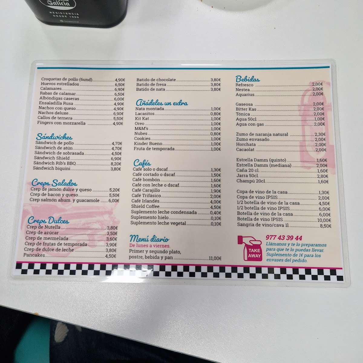Welcome to Bar Shield, a delightful destination nestled in Els Pallaresos, Tarragona, where American diner nostalgia meets vibrant Spanish hospitality. As you step into this retro haven, you’re transported back to the 1950s, surrounded by classic American décor and friendly faces. The menu boasts an eclectic array of offerings, perfect for any time of day.